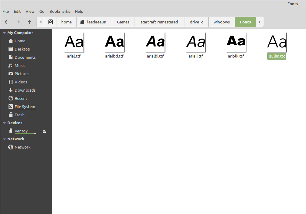 /starcraft-remastered/drive_c/windows/Fonts 경로로 복사합니다.